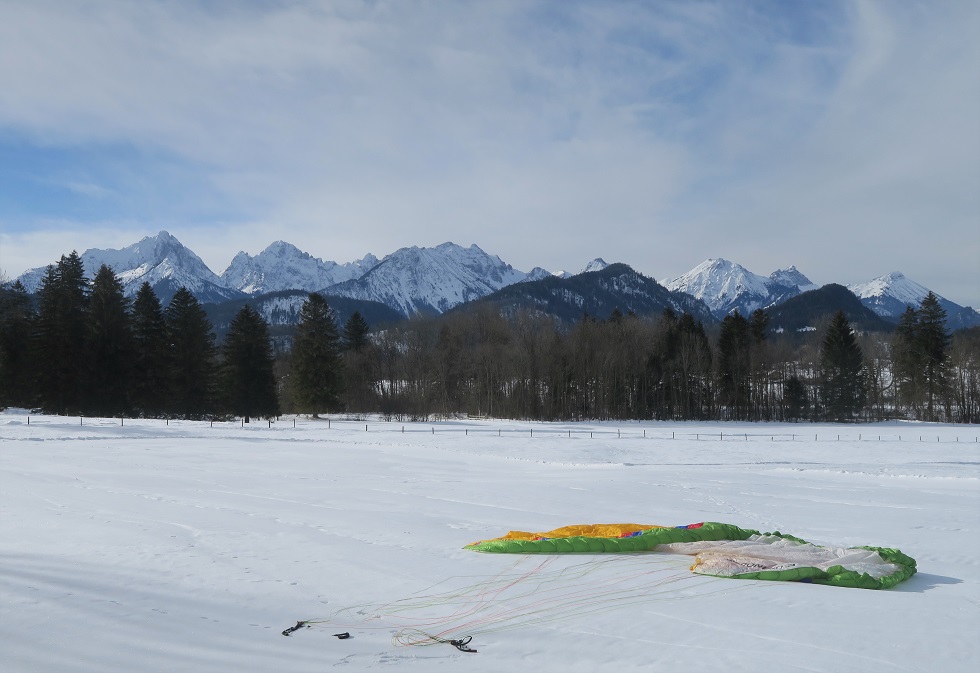 Als ich kurz vor zwölf am Tegelberg oben bin, steht der Nordwestwind sauber an!