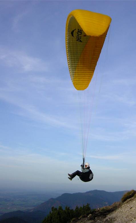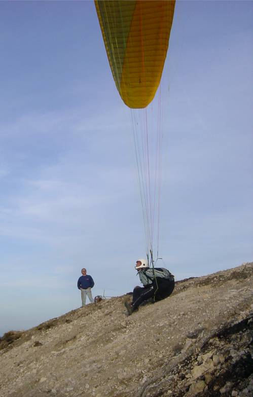 Gigi ist da, mit Gleitschirm.