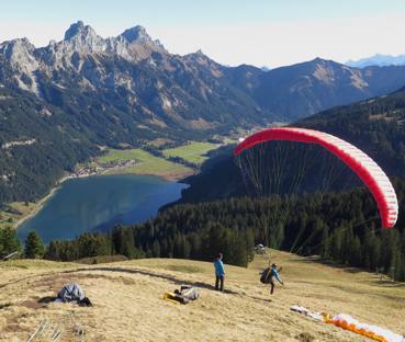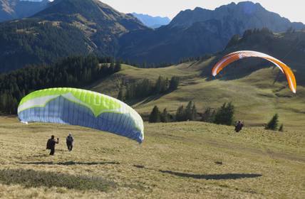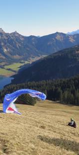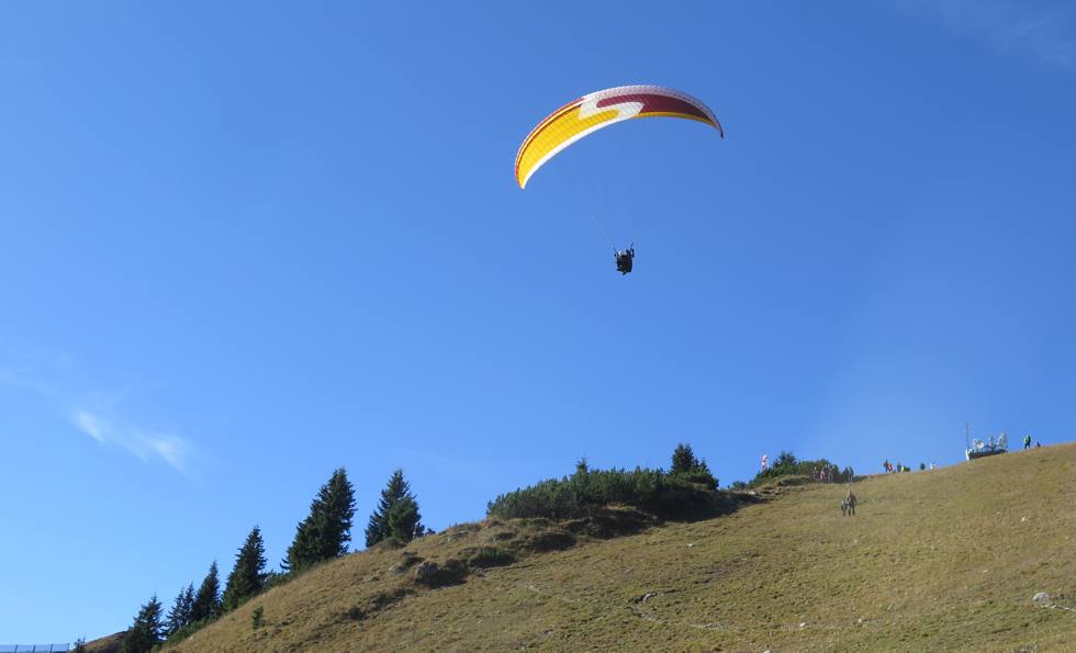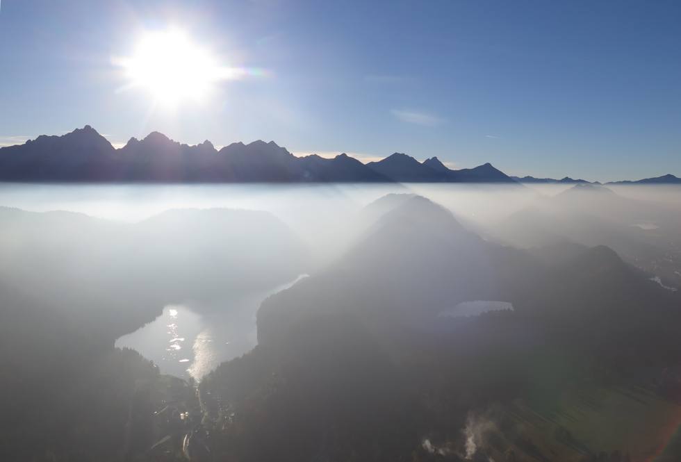dass der Tegelberg gerade aufgemacht hat. Da fliege ich auch noch. Oben ist es windstill.