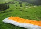 Als mittags der Regen aufhört, hängen die Wolken knapp über Buchenberg und der Wind scheint zu passen.