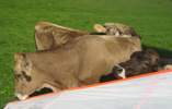 Die Kühe sind heute besonders aufdringlich. Sie sabbern aufs Segel, sie knabbern am Rohr, sie schubbern die Schulter