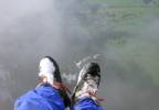 Wo soll sie auch sonst hin, die Feuchtigkeit? Der Tegelberg wird erst nachmittags fliegbar. Der Startwind ist ok, es trägt sogar etwas, aber es ist auch leeig turbulent. Ich geb es mir zweimal.