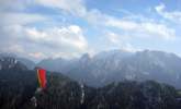 unter Gipfelkreuz und die ersten Piloten kommen weiter draußen hoch.